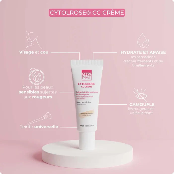 Apply Cytolnat CC cream Masks Universal Tint Cytolrose Sensitive Skin 40ml (1.35fl oz) every morning on cleansed face and neck for a flawless and radiant complexion all day long.