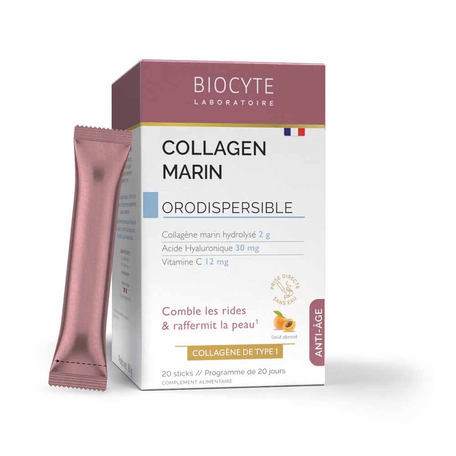 Biocyte Anti-aging Marine Collagen Hyaluronic Acid and Vitamin C Apricot flavor 20 orodispersible sticks