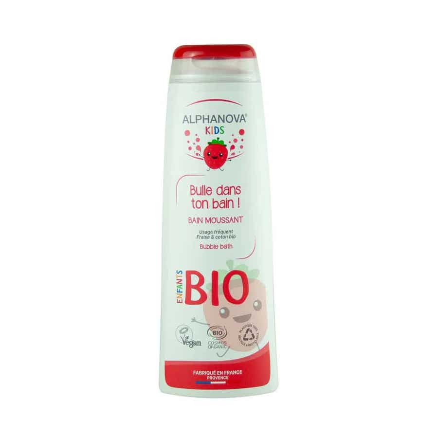 Aplique Alphanova Kids Bioes Foaming Bath Bulle Dans Ton Bath Strawberry 250 ml (8,45 fl oz) al agua corriente del baño, creando una espuma rica y espumosa para que su hijo disfrute durante la hora del baño.